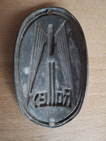 Rolley Markenschild 1945. Material Guss. Lochabstand Mittig gemessen 60 mm. Höhe 65 mm. Breite 32 mm. Gebogene Höhe 19 mm. Sehr schön. Das war die Marke von C.A. Drenowatz Zürich 4 dem damaligen Distributor von Sturmey Archer.