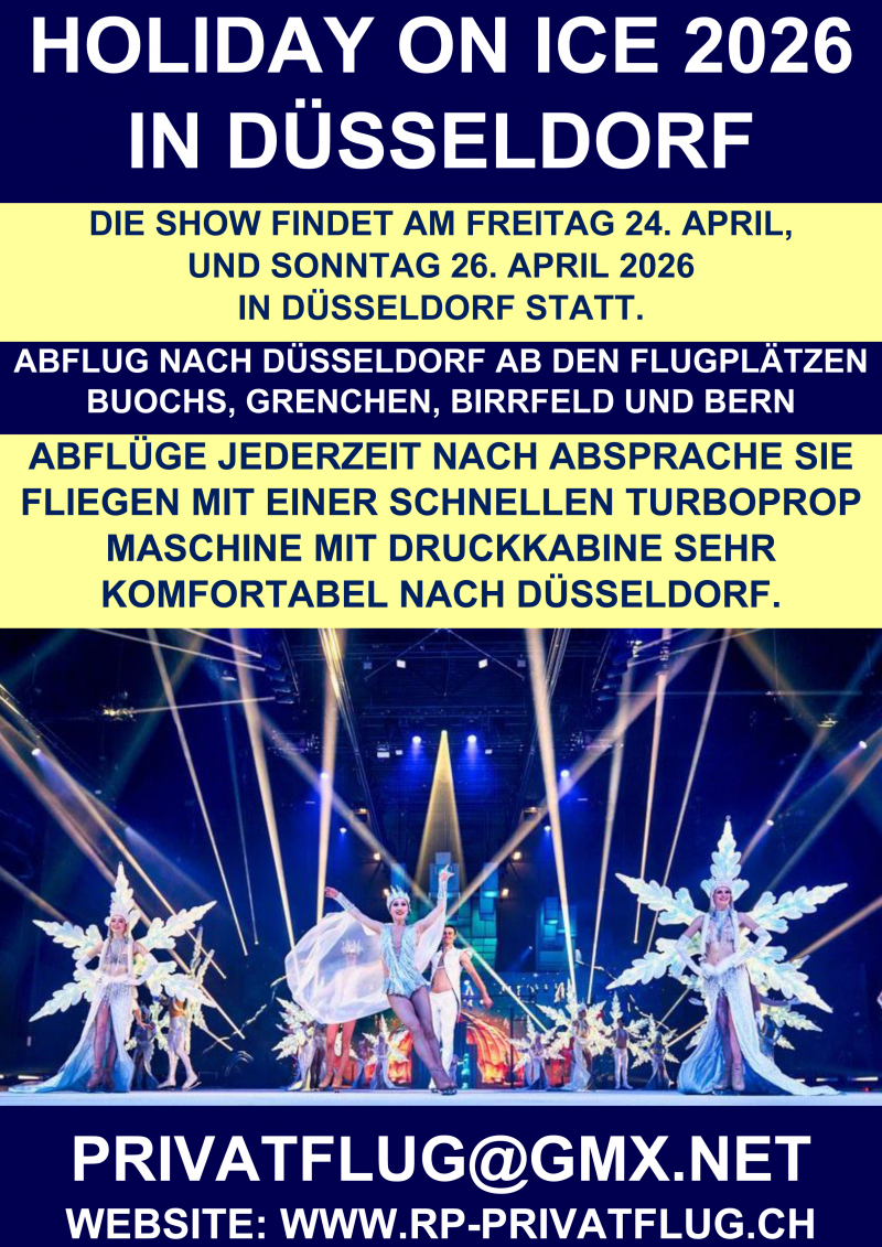 SWISS PRIVATE FLYING FLIEGT ZUR HOLIDAY ON ICE SHOW AB DEM 24. BIS 28 APRIL 2026 JEDERZEIT NACH ABSPRACHE.