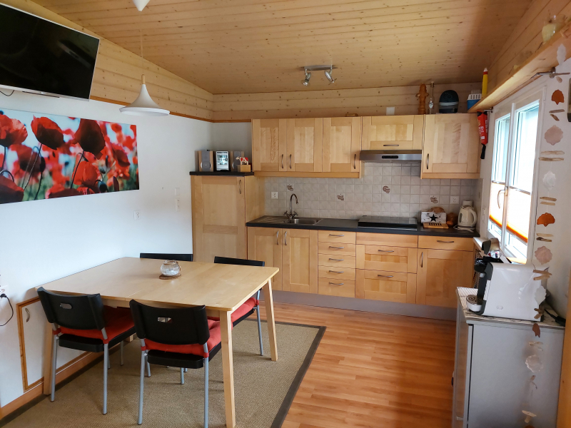 Der Vorbau verfügt über zweifach verglaste "Internorm" Fenster. Auch die Eingangstüre ist von derselben Qualität. Weiter ist im Vorbau eine top Küche montiert. Am Vorbau angebaut ist noch ein Technikraum, wo die ganze Wasserversorgung inklusive Boiler versorgt ist. Das Dach geht über den ganzen Vorbau plus den Wohnwagen, und ist da mit Metallstützen abgestützt.