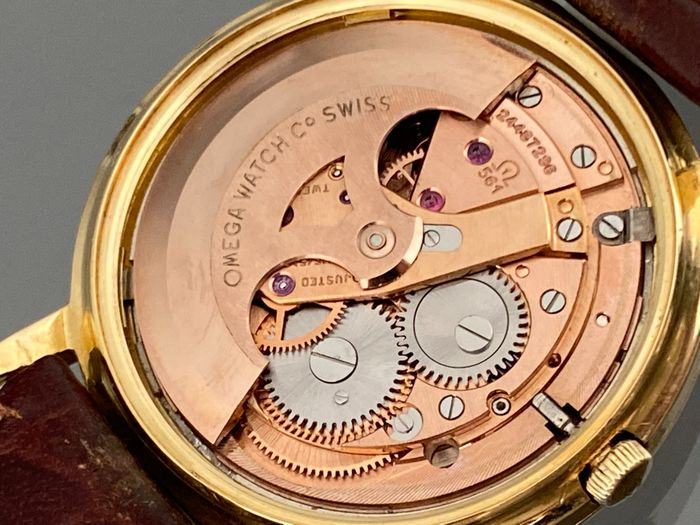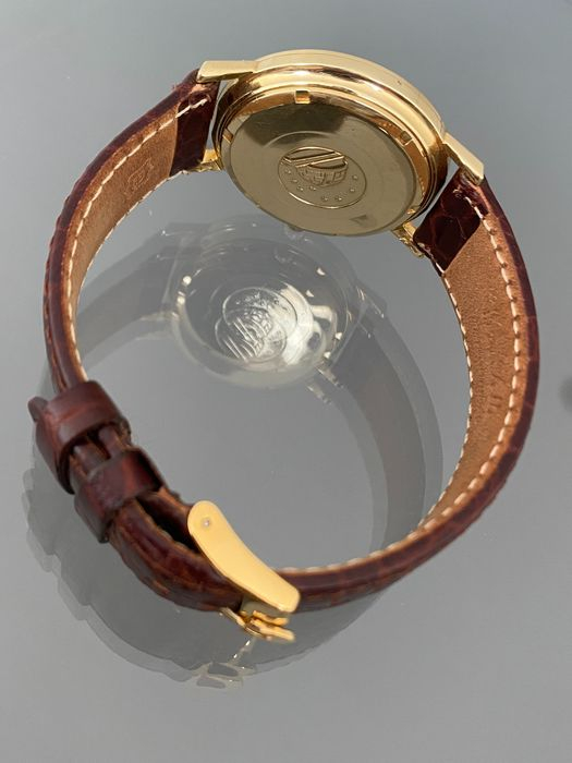 Das Gehäuse aus 18 Karat GOLD mit echter Omega-Krone weist keine größeren Gebrauchsspuren auf.