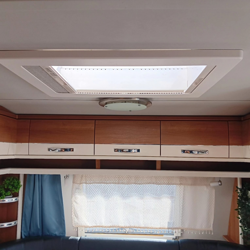 Grosses Bett hinten sowie vorne. Jedoch kann vorne auch eine Sitzgruppe U Form mit Tisch gemacht werden. (Lederpolster)