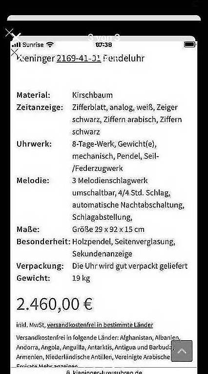 wunderschöne sammler pendel Uhr Kieninger 3 jahre alt top nzustand immer gepflegt & gewartet infos bei einer Besichtigung! fixpreis!