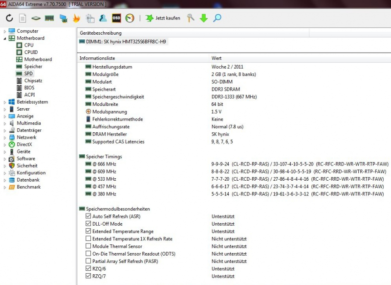 Arbeitspeicher / RAM 2GB SO-DIMM DDR3-1333 SK Hynix