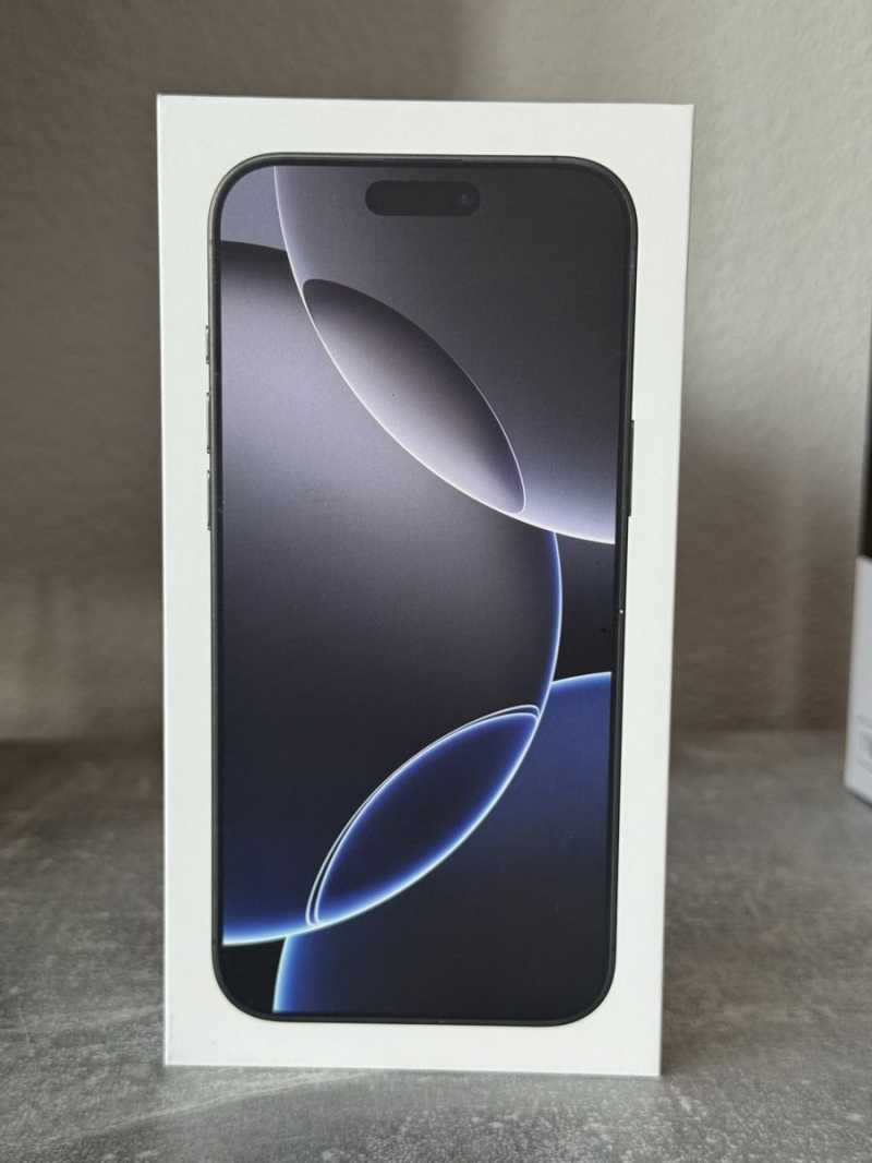 Verkaufe mein ungeöffnetes Apple iPhone 16 Pro Max in Schwarz (Black Titanium).