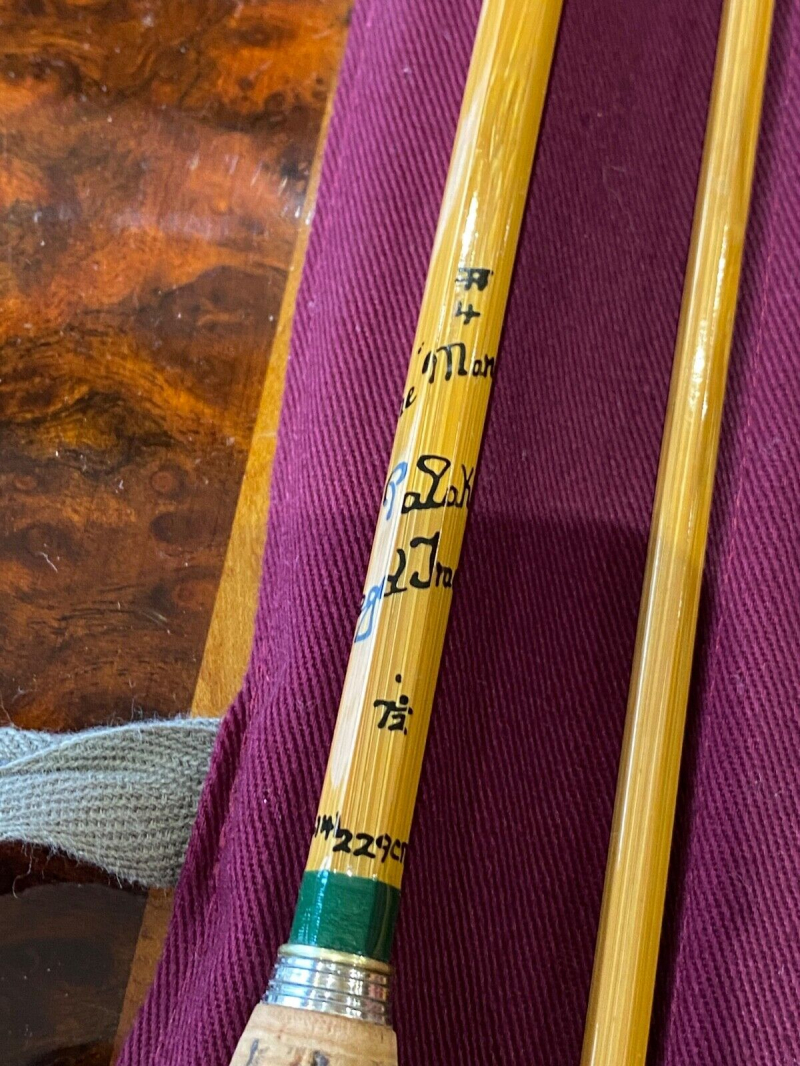 Atemberaubende Hardy Marvel 7 1/2 ft Palakona Bambus-Fliegenrute, dreiteilig mit zwei Spitzen, AFTM Gewicht 4, komplett mit originalem Hardy-Lederschutzrohr und Baumwollhülle. Siehe alle Fotos. Nur ausgestellt, sehr selten.