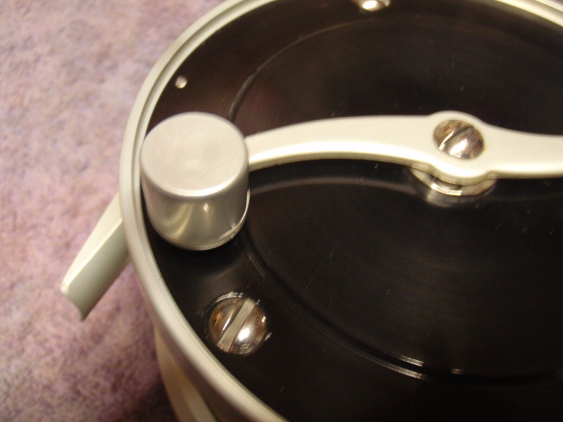 Mit lautem Klicker, sehr starker, einstellbarer Bremse (Bremstrommel) und einem an der Rückplatte montierten, abgeschirmten 10-Positionen-Regler.