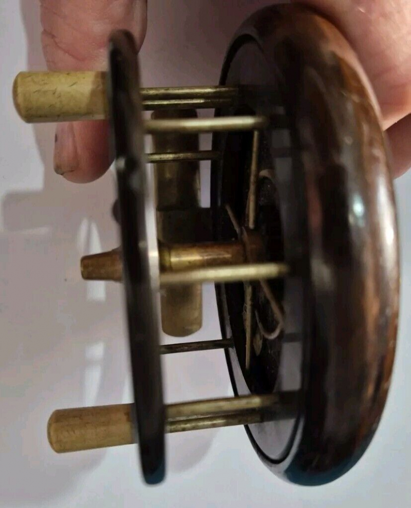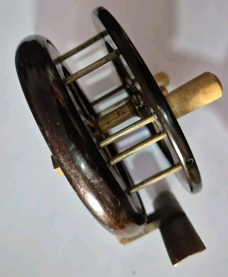 Diese Vintage-Rolle Allcocks Coxon Aeriel 4104-T2 mit 3 1/2 Zoll stammt aus den Jahren 1896–1905 und ist ein seltener Fund für Angelfreunde. Diese im Vereinigten Königreich hergestellte Single-Action-Rolle verfügt über ein 4-Speichen-Design und ist ideal zum Friedfischangeln mit einem maximalen Schnurgewicht von 6 lb. Mit ihrer reichen Geschichte und Handwerkskunst ist diese Allcocks-Rolle ein Sammlerstück für alle, die sich für Vintage-Angelausrüstung interessieren.