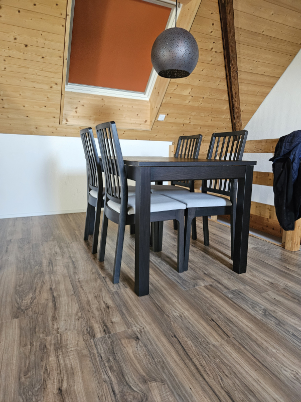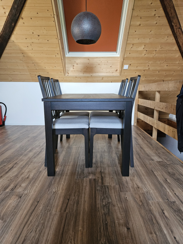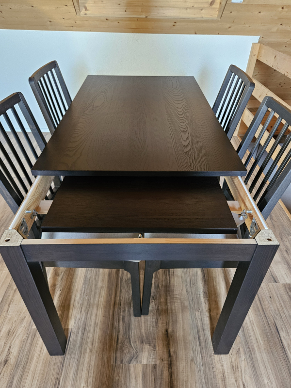 Ikea Esstisch zum ausziehen 130/190 x 80 dunkelbraun mit 4 Stühlen dazu.