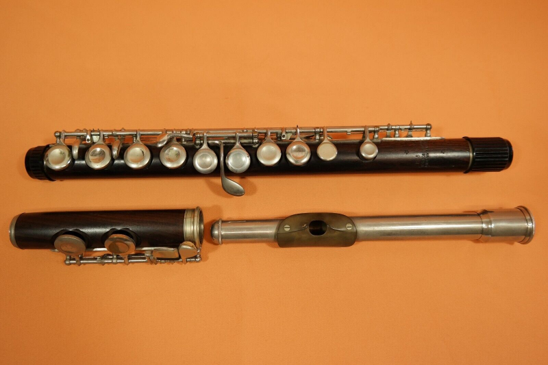 Korpus aus Holz , Klappen sind vernickelt , Mundstück aus Metall