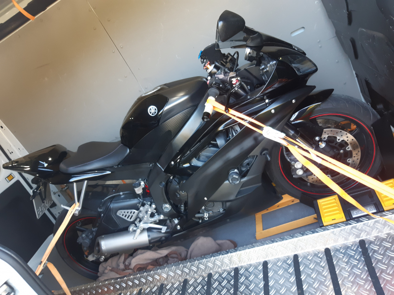 Ihr Motorrad / Töff wird professionell mit Auffahrrampe verladen und mit Halteschiene gesichert.