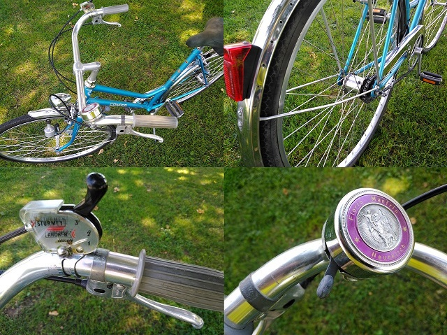Jahrgang 1985 Schweizer Condor.Velo 26Zoll.3Gang Sturmey Archer. Stahlrahmen 46cm.Verchromte Aluminium Inox Weinmann Felgen. Mit neuen Reifen. Weinmann Bremsen Vorne und Hinten,mit neuen Bremsklötzen.Zwei Inox Chrom Schutzblech. Aluminium Gesundheits Lenker.Original alte Christophorus Glocke,Chrom Deckel.Gepäckträger. Seitenständer. Neuer Kettenschutz.Neue Kette. Reflektierende Pedalen. Dynamo Licht Vorne mit Rücklicht Hinten.Alle Kabelzüge mit Kabelhülle sind neu.Tretlager,Steuersatz so wie 3Gang Nabe sind revidiert ! Das Velo ist in einem 1A Zustand.Keine Kratzer.Preis Verhandlungsbasis. Sieht aus wie neu ! !.