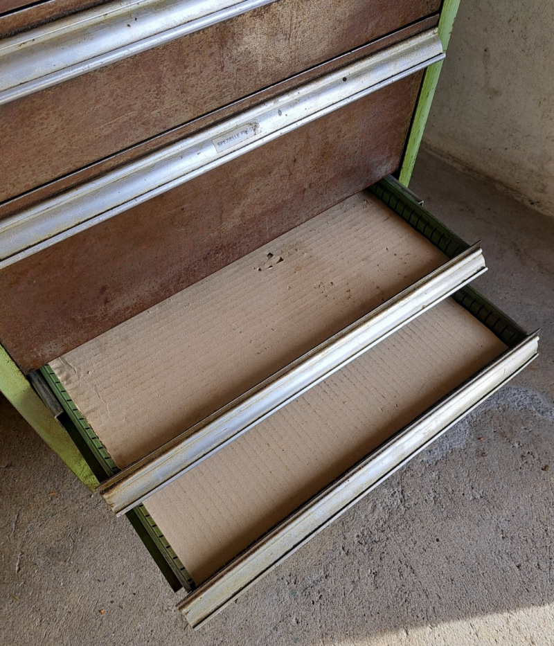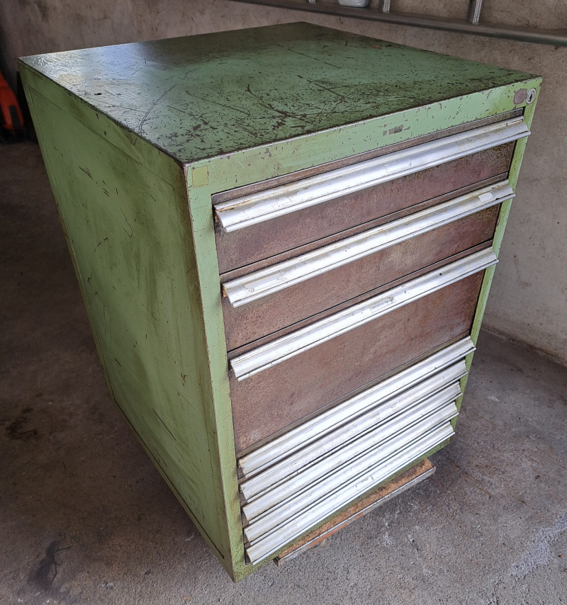 Lista Schubladenschrank mit 8 Schubladen , Masse 600 x 600 / 800mm. einige rote Behälter und Trennwände dabei
