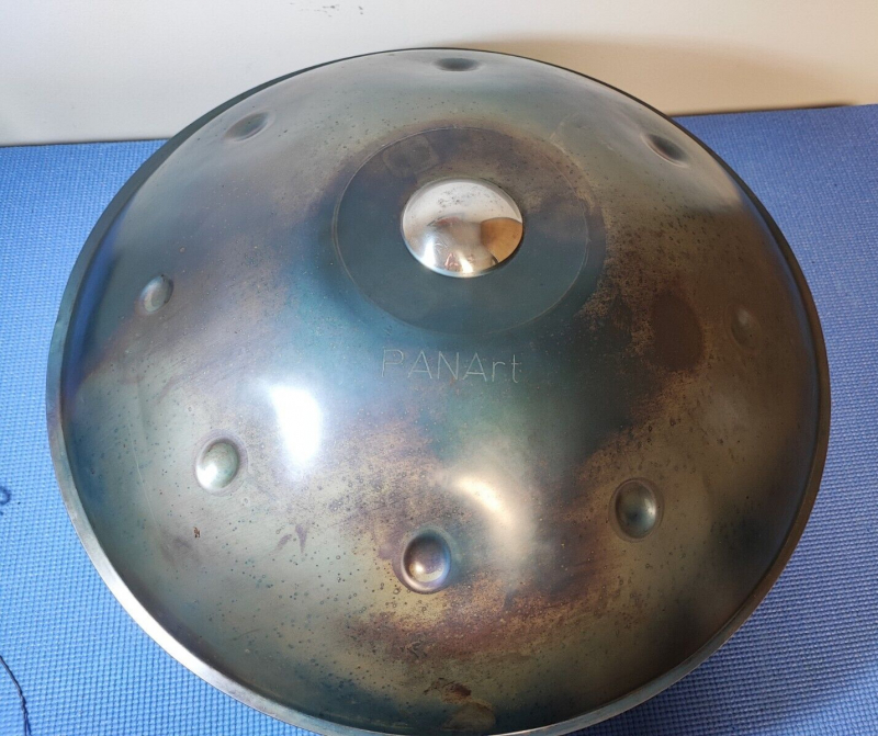 Die Oberfläche weist alters- und besitzerbedingt an einigen kleinen Stellen leichten Rost auf. Die Farbe der Oberseite hat sich verändert, was den Klang jedoch nicht beeinträchtigt. Auf der Oberseite befindet sich eine kleine Delle (siehe Fotos).
