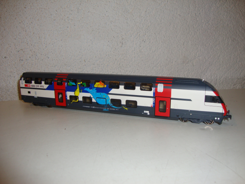 Verkaufe einen gebrauchten Roco SBB Dosto Steuerwagen IC 2000 Dino HO Gleichstrom ohne Lichtfunktion.