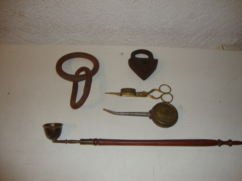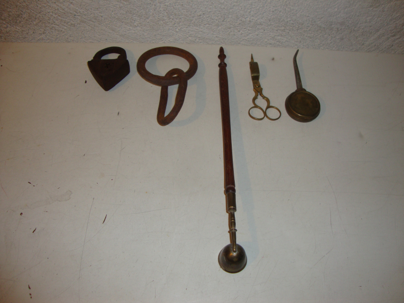 Verkaufe diverse alte Artikel: Vorhängeschloss (Deko) /2Eisenringe/alter Kerzenlöscher/ Scherenkerzenlöscher und eine alte Ölkanne Vorauszahlung zuzüglich 8.50 Versand.