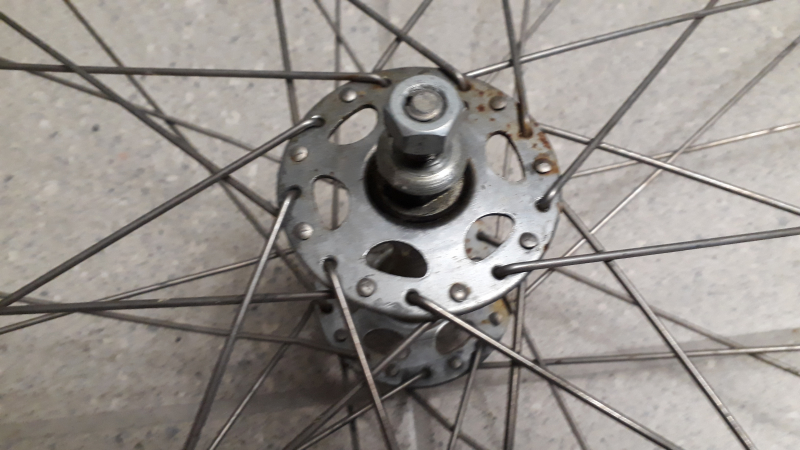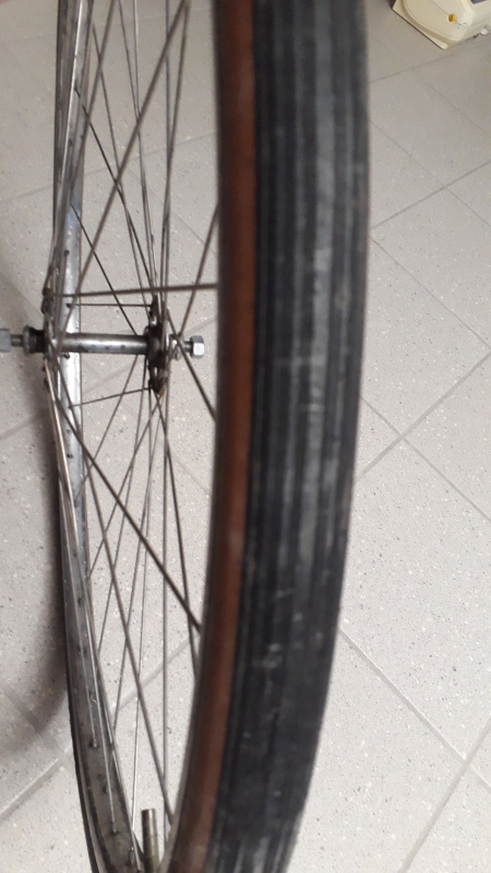 Es ist noch ein alter Reifen drauf mit einem alten Schlauch drin.