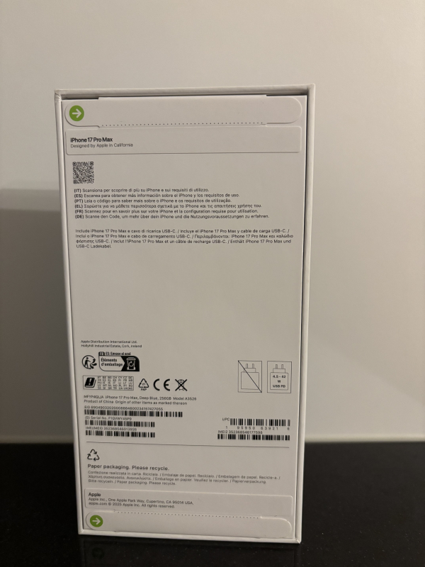 Ich habe ein iPhone 17 Pro Max mit 256 GB in Blau gekauft. Die Garantie läuft bis zum 13.02.2028. Das Gerät wird ungeöffnet verkauft.