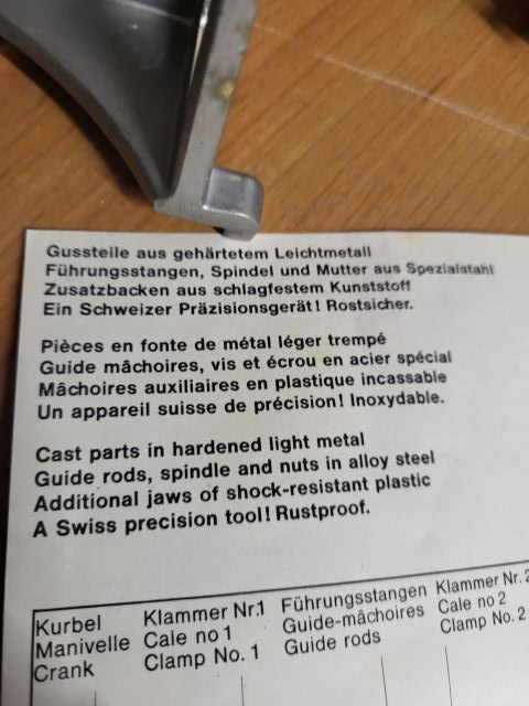 Schraubstock, Hobelbank, Leimzwinge, Gussteil aus gehärtetem Leichtmetall , Führungstange, Kurbel , rostsicher ,Neu , Abholen oder Porto Fr.12.-