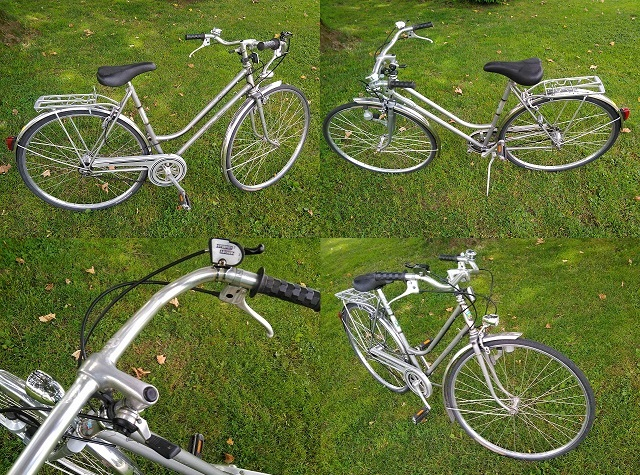 Damenvelo Supersport 5Gang Classic Vintage.39sig Jähriges Schweizer Marken Velo 28Zoll. Jahrgang 1985. Marke Alpina,5Gang Sturmey Archer. Stahlrahmen 54cm. Hochglanzpolierte Aluminium,Weinmann Felgen. Weinmann Bremsen Vorne und Hinten,mit neuen Bremsklötzen. Zwei Inox Chrom Schutzblech. Aluminium Gesundheits Lenker mit neuen Griffen. Gepäckträger.Seitenständer. Original alte Metall Glocke. Oldi Sport Sattel,wie damals. Kettenschutz. Reflektierende Pedalen.Dynamo Licht Vorne mit Rücklicht Hinten. Alle Kabelzüge neu.Tretlager,Steuersatz so wie 5Gang Nabe sind revidiert ! Das Velo ist in einem 1A Zustand. Keine Kratzer.Normale sehr leichte Abnutzung. Eine absolute Rarität! (Diese Velos mit 5Ganger Nabe sind fast nicht mehr zu finden, Wertsteigerung ) !