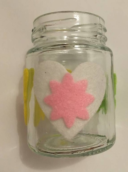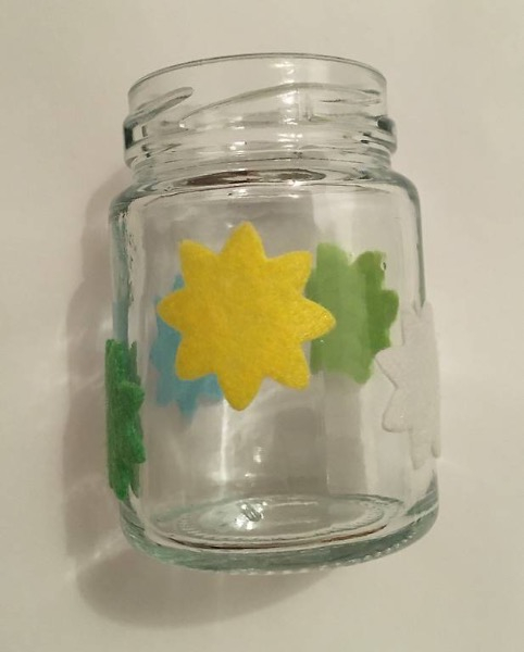 2er Set mini Glasvase mit farbiger Filzdeko mit Schmetterlinge und Blumen, gemäss Bild.