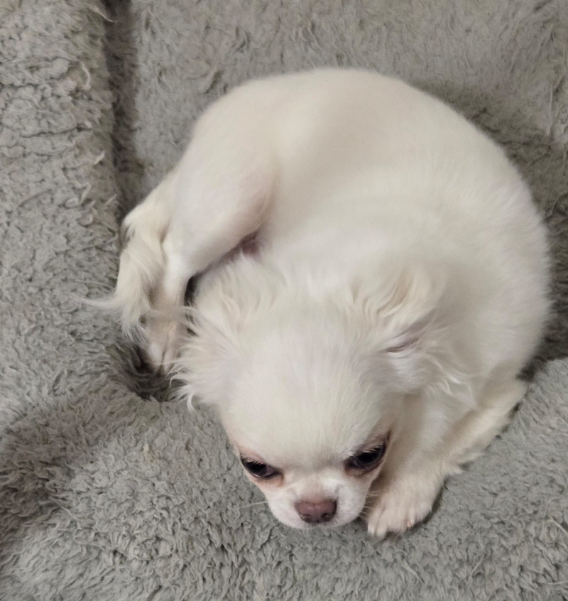 Chihuahua Welpe M weiß,langhaarig, geboren am 16 Oktober sucht ab sofort eine liebevolle Familie fürs Leben. Er ist sehr verspielt, neugierig und möchte viel kuscheln. Der kleine Prinz wächst inmitten der Familie auf und ist an anderen Tieren gewöhnt. Er wir geimpft, gechippt und entwurmt abgegeben (inkl. Stammbaum).