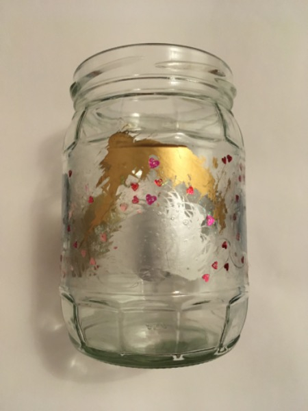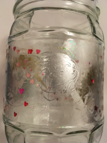 Glasvase mit Deko farbglitzer, gemäss Bild.