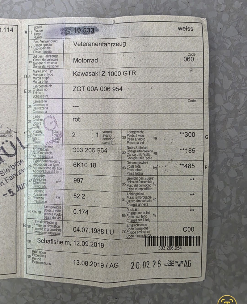 Ist als Veteranenfahreug eingetrage, was gändert werden kann.