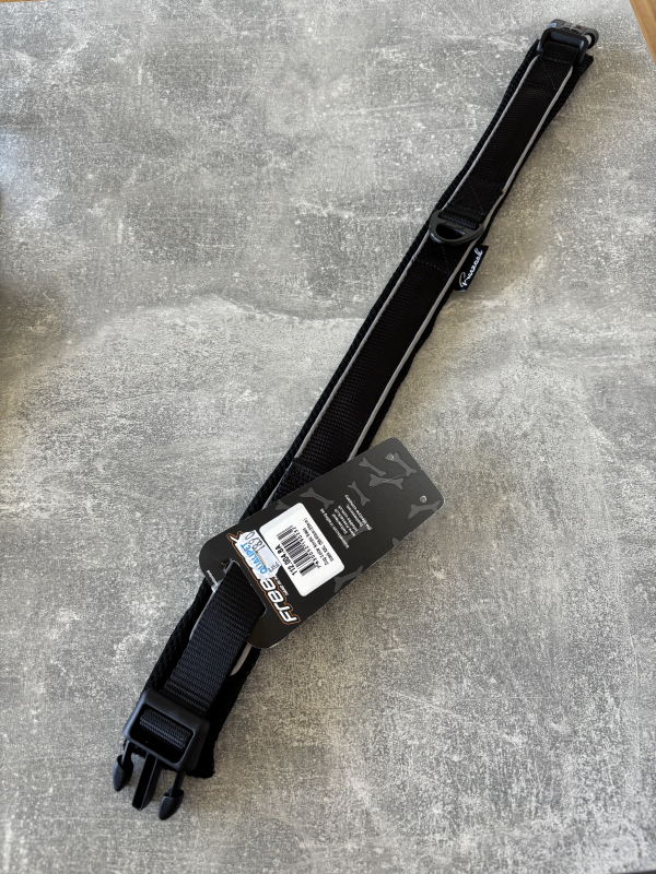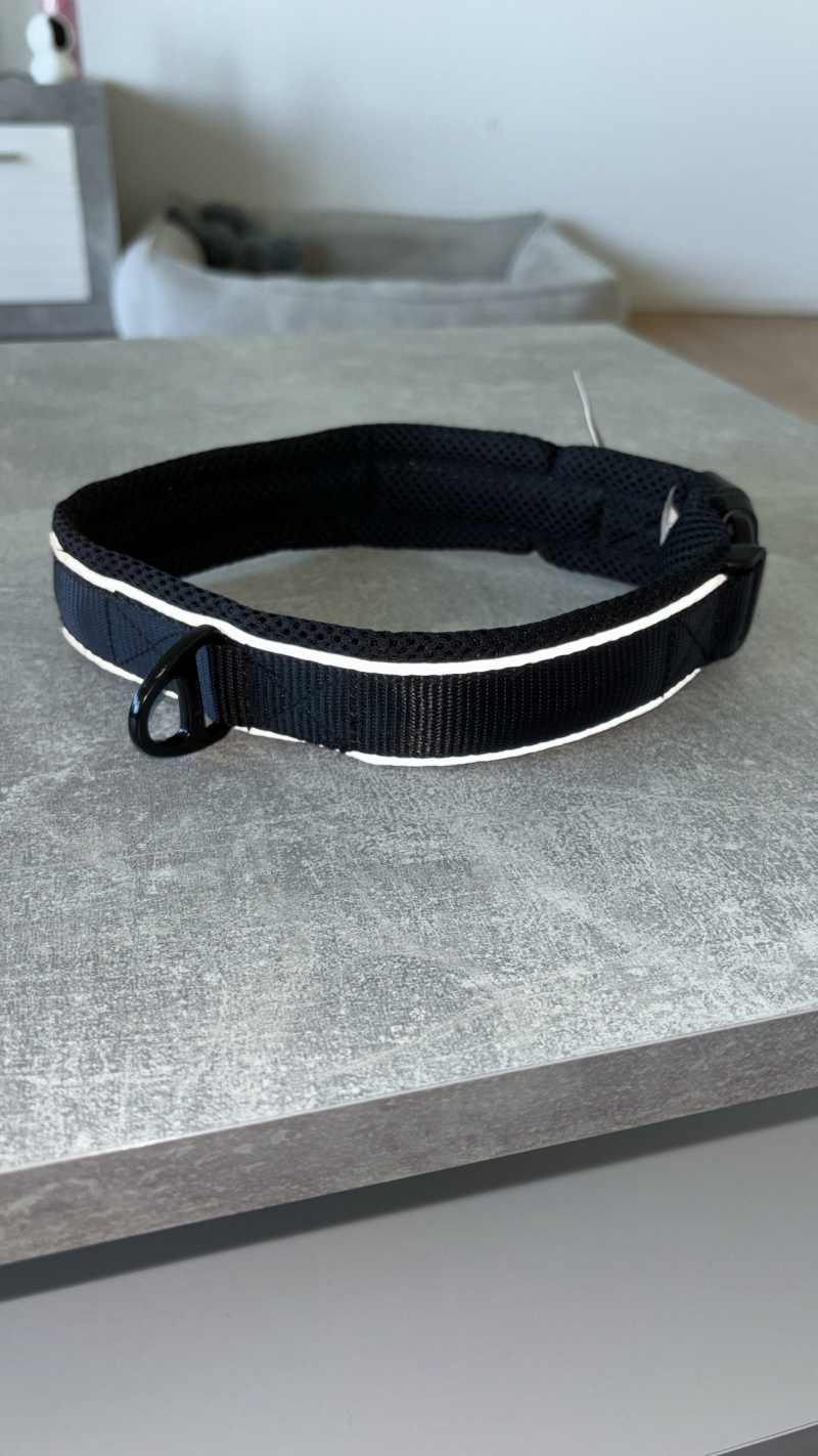 Robustes und bequem gepolstertes Hundehalsband in Schwarz mit reflektierenden Details. Neu und unbenutzt, ideal für große Hunde. Breite: ca. 25 mm und Versand gegen Aufpreis möglich.