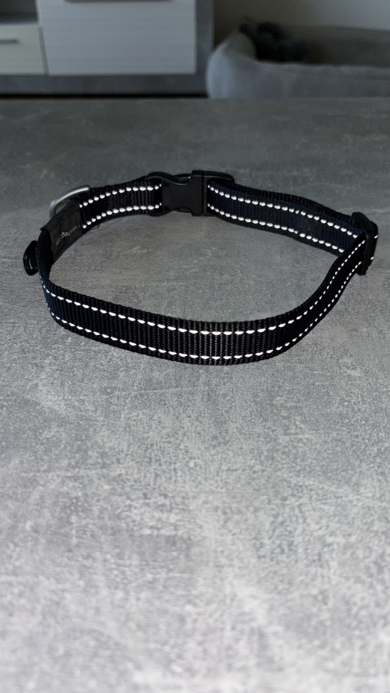 Robustes und leichtes Halsband mit reflektierenden Nähten. Versand gegen Aufpreis möglich.